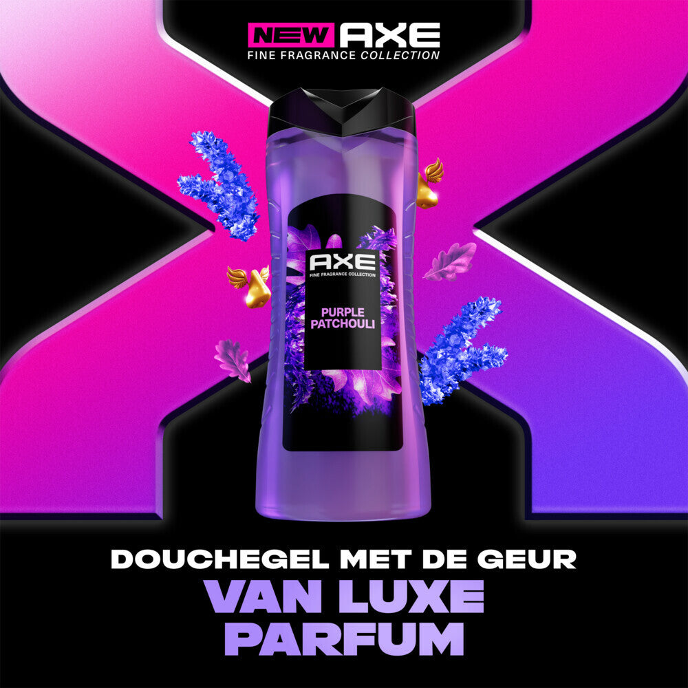 Ontdek de onweerstaanbare geur van Axe Purple Patchouli douchegel. Deze verfrissende douchegel reinigt de huid grondig en laat een krachtige, kruidige geur achter die de zintuigen prikkelt. Met zijn unieke combinatie van patchouli en verfijnde geurtonen geeft hij je zelfvertrouwen en energie, elke douche weer.