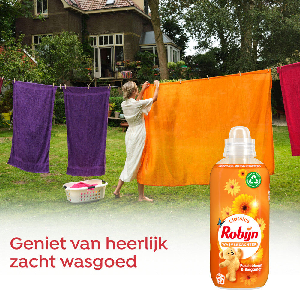 Robijn Classics Passiebloem & Bergamot wasverzachter houdt je was heerlijk zacht en fris met een langdurige geursensatie.- Robijn Passiebloem & Bergamot wasverzachter geeft een intense geurbeleving