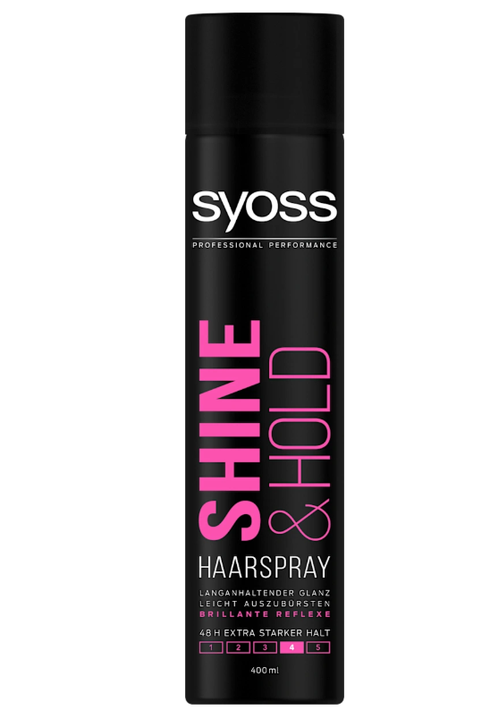Syoss Shine Haarspray versterkt het haar en geeft langdurige hold en prachtige glans.
